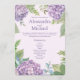Watercolor Lavender Hydrangea Flowers Fern Wedding Programme