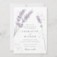 Watercolor lavender with watercolor spatter and a watercolor background on the back. Elegant floral wedding invitation.