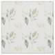 A delicate, watercolor design on a soft cream background of leaves in lite green to grey tones.