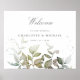 watercolor leaves greenery wedding welcome sign