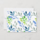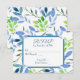 Blue and green watercolor leaf pattern with slit corner frame for wedding RSVP.