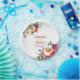 Watercolor lemon and magenta floral wedding paper plate