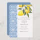 Watercolor Lemon Blue tile Mediterranean Wedding Invitation