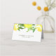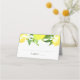 A watercolor of lemons with greenery and lemon blossoms is featured on these pretty wedding place cards.