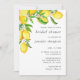 This lemon watercolor bridal shower invitation is perfect for spring or summer garden citrus themed showers and bridal brunch parties. It features vibrant, bright yellow watercolor lemons and green leaves and white and pink lemon blossoms. Great for that bride that has found her main squeeze!