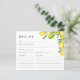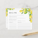 This lemon watercolor bridal shower recipe card is perfect for spring or summer garden citrus themed showers and bridal brunch parties. It features vibrant, bright yellow watercolor lemons and green leaves and white and pink lemon blossoms. Great for that bride that has found her main squeeze! Ask your guests to fill out their recipe card and bring them to your bridal shower.