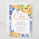 Celebrate your child first birthday with this elegant watercolor citrus-themed invitation. The design features watercolor illustrations of oranges, clementines, lemons and green leaves, against a charming tiled background for a summer Mediterranean feel. Use the design tools to customise the text, fonts and colour.