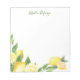 Reveal your tart side with this pretty lemon-themed notepad. A bunch of whole and cut lemons arrange along the bottom of this bright note pad. Add your name or other message at the top. Great for your own use or use as a pretty commemoration of a citrus or garden-themed wedding, engagement, anniversary, or birthday. Available with matching products.