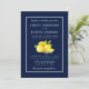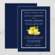 Modern Elegant Watercolor Lemons Greenery Wedding Invitation. Blue Background.