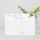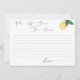 Bridal Shower advice cards with the heading "when life gives your lemons" in navy modern calligraphy font and a single watercolor lemon with leaves. Includes grey guide lines and 'love' sign off. The reverse features a navy blue background with a pattern of watercolor lemons and leaves.