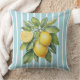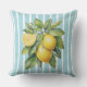 Watercolor Lemons on Blue Striped Background Cushion