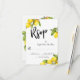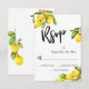 This card features a typography graphic reading "RSVP" and "M" that was rendered in a handwritten, casual script font. Displayed around the borders I've placed an array of watercolor lemon clusters with greenery attached. All editable text appears in a versatile serif typeface that can be changed if you wish. More lemons were placed on the back of the card. All layers were added separately so you can have maximum design control. Rotate or re-position any part of the design you see fit to edit. Don't hesitate to reach out if you have special requests with which I can assist. // 105 //
