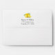On the outside flap are placeholders for your names and address, along with a small cluster of watercolor lemons. On the inside of the flap, a different sprig of watercolor lemons grace the printed area. Behind the citrus fruit is an image depicting rich brown rustic wood. Designed to match a pretty wedding and event collection, you will find an array of cards for which these envelopes are ideal.