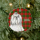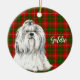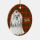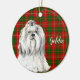 Watercolor illustration of Lhasa Apso dog on festive green and red plaid background. Personalise with name or special message