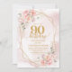 Watercolor Light Pink Gold Flowers 90th Invitation