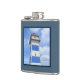 Nautical themed design with watercolor lighthouse decoration in dark blue frame. It is possible to change the background colour and to add different one to the design with your choice.