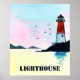 A beautiful scene of a lighthouse surrounded by the sea with a beautiful background.