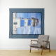 Nautical themed design with watercolor lighthouse decoration in dark blue frame. It is possible to change the background colour and to add different one to the design with your choice.