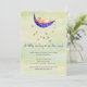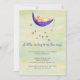 Ivory cream, green and orange watercolor hand painted modern baby shower invitation featuring a cat sleeping on the moon and falling little stars. --- Personalise it with your text and party details! It is suitable for both baby boys and girls or for gender reveal parties.