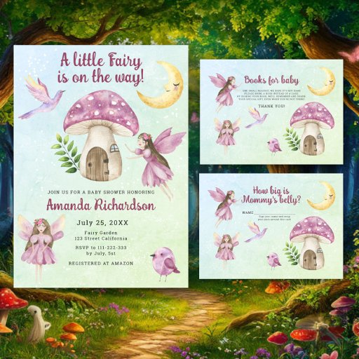 Watercolor Little Fairy Whimsical Baby Shower Invitation