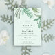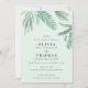 This charming destination wedding invitation features watercolor palm leaf illustrations in shades of green on a pale turquoise green background inspired by the clear waters of the Gulf Coast.