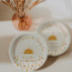 Watercolor whimsical sunshine and stars "our little sunshine is turning one" gender neutral 1st birthday paper plates