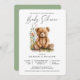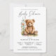 Watercolor Little Teddy Bear Flowers Baby Shower Invitation