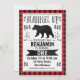 Looking for a cute lumberjack birthday invitation with a hint of watercolor? This design might be what you are looking for. If features some hand written style fonts, a bear silhouette and various decorative elements on a scanned watercolor paper background. The border and the back of the invitation is a black and red plain pattern. More invitation templates in this theme are available at the store. This watercolor lumberjack 1st birthday invitation can be used for other ages and is ready to be personalised.