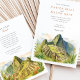The reverse side, designed for "The Finer Details," continues the captivating scene, featuring the Machu Picchu mountain and surrounding mountains, framed by colourful foliage. The soft watercolor style gives this suite a romantic and adventurous feel. It's perfect for a destination wedding in Peru, a travel-themed celebration, or for any couple who appreciates history, natural beauty, and a touch of wanderlust.