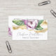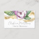 This romantic floral business card features a simple and elegant white background with watercolor magnolia flowers. A delicate bouquet of magnolias is pictured on the top, accented with a gold foil alcohol ink pattern. A sample name is printed at the bottom in an elegant script font followed by a job title.