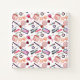 This design features assorted beauty care tools in a soft watercolor pattern.