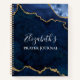 Modern Elegant Fashionable Watercolor Navy Blue and Gold Marble Agate Geode Prayer Journal Notebook personalised with your name in trendy script.
