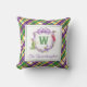 Watercolor Mardi Gras Plaid Animals Monogram Crest Cushion