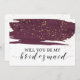 This watercolor marsala & gold will you be my bridesmaid card is perfect for an elegant wedding. This luxurious design features a modern splash of a burgundy maroon watercolor texture overlaid with beautiful faux gold glitter. Customise the card with the name of the bride and the bridesmaid.