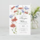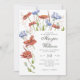 Romantic wedding invitation featuring watercolor meadow flowers/ wildflowers and grass. Flowers such as red poppies and blue cornflowers.