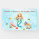 This watercolor mermaid clipart features a cute under-the-sea mermaid with flowing blonde hair, a turquoise tail, a purple seashell top, and surrounding coral, shells, and bubbles. Perfect for kids’ birthday invitations, party décor, and underwater-themed accessories.