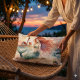 This dreamy watercolor artwork captures a serene mermaid resting on a sun-warmed shore, her iridescent tail blending seamlessly into the ocean’s gentle hues. With her flowing red hair catching the breeze and a tranquil lighthouse glowing in the distance, the scene evokes a sense of quiet magic and coastal nostalgia. The palette flows through soft seafoam greens, blush corals, and sandy neutrals, creating an aesthetic that's both whimsical and peaceful. Seashells, starfish, and foamy waves add charming seaside touches, while the painterly style enhances the ethereal, cottagecore vibe. Perfect for lovers of coastal daydreams, folklore, and gentle ocean scenes. AI generated artwork.