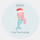 Watercolor Mermaid Santa Christmas Classic Round Sticker