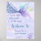 Watercolor Mermaid tail Girl Baby shower Welcome Poster