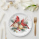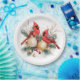Watercolor Merry Christmas Red Cardinal & Berries Paper Plate