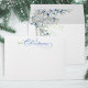 Lovely light pastel watercolor style blue and green juniper branches with elegant Merry Christmas script and editable text fields.