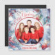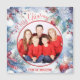 A pretty scene of a winter wonderland of snow and pine trees with a 'Merry Christmas' greeting. Bordered by pine cones, berries and Christmas foliage and greenery, this holiday magnetic card allows for a photo and personalisation of all text. Add a personal touch to your Christmas cards this festive season.