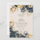 Watercolor Midnight Blue Gold Floral Wedding Invitation