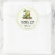 The sticker is made on wonderful paper and had no problem sticking to the bag that I purchased to put it on. I wanted to find a design that would be cute for the bride and groom and this one fit the bill as it has cute "bees" buzzing around and the wedding was taking place in a town called "Bee Cave". The packaging was great and protected the stickers. The website is easy to navigate and there are so many color choices. I had no problem finding a color that the bride was using on everything else selected. The design was adorable and there were many to choose from. You can make the figure as larger or smaller and you can place the photo and writting whereever you want to in the sticker. The printing is fabulous..better than expected.