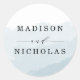 Simple, elegant wedding stickers featuring a blue watercolor wash with placeholders to personalise with your names. The custom wedding stickers are perfect to use as wedding envelope seals or party favours.