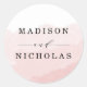 Simple, elegant wedding stickers featuring a blush pink watercolor wash with placeholders to personalise with your names. The custom wedding stickers are perfect to use as wedding envelope seals or party favours.