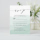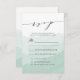 Our elegant Watercolor Mist wedding response cards feature a mint watercolor wash background with a hand-lettered calligraphy font. Personalise the chic wedding RSVP cards with your wedding details and dinner options.