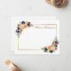 Modern Elegant Watercolor Floral and Greenery Personalised Note Card includes golden yellow, peach, blue and burgundy flowers and roses, botanical greenery on a gold frame.