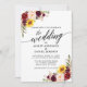 Modern Elegant Calligraphy Mixed Floral Wedding Invitation includes Watercolor burgundy roses, pink roses, red roses, sunflowers and botanical greenery.