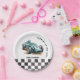 Watercolor Modern Race Car Boy Birthday Party Paper Plate